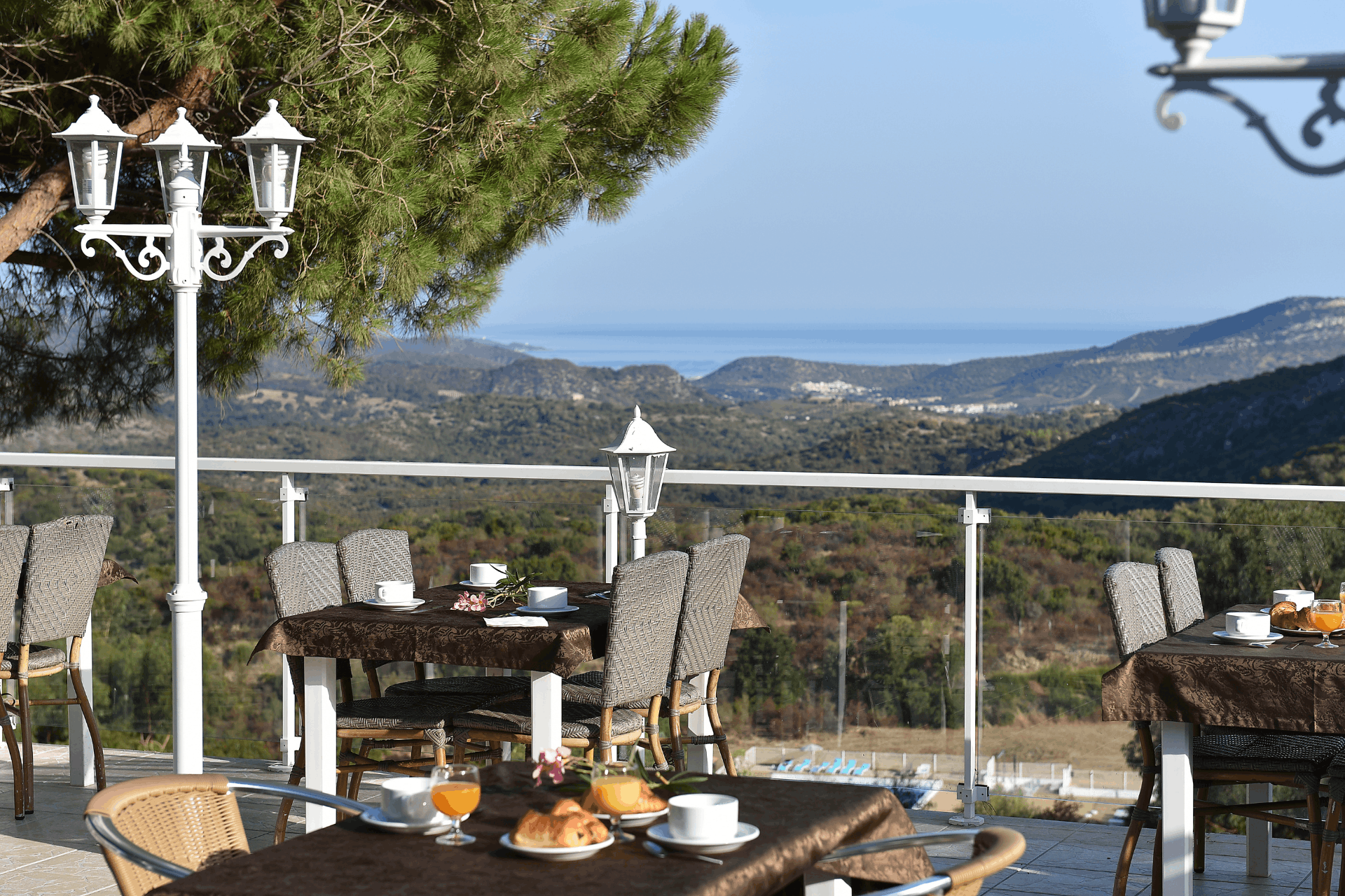 Le restaurant U Miravalle de l’Hôtel & Résidence U Nebbiu  propose une cuisine aux saveurs méditerranéennes et corses dans un cadre naturel avec vue sur la vallée et le golfe de Saint-Florent.