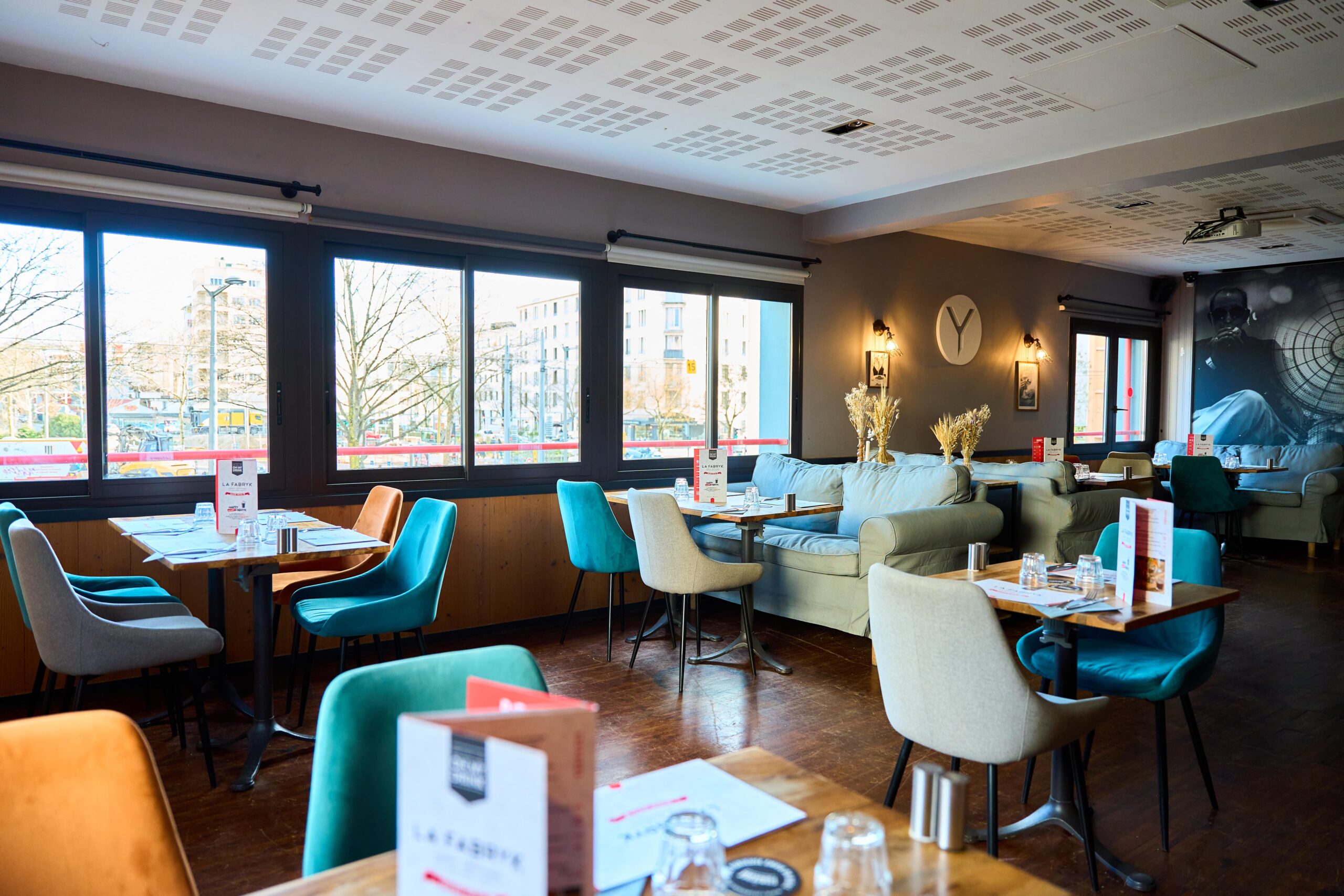 Face à la Maison de la Danse, La Fabryk vous accueille 7 jours sur 7, en service continu, avec 200 couverts dans une ambiance conviviale et chaleureuse.