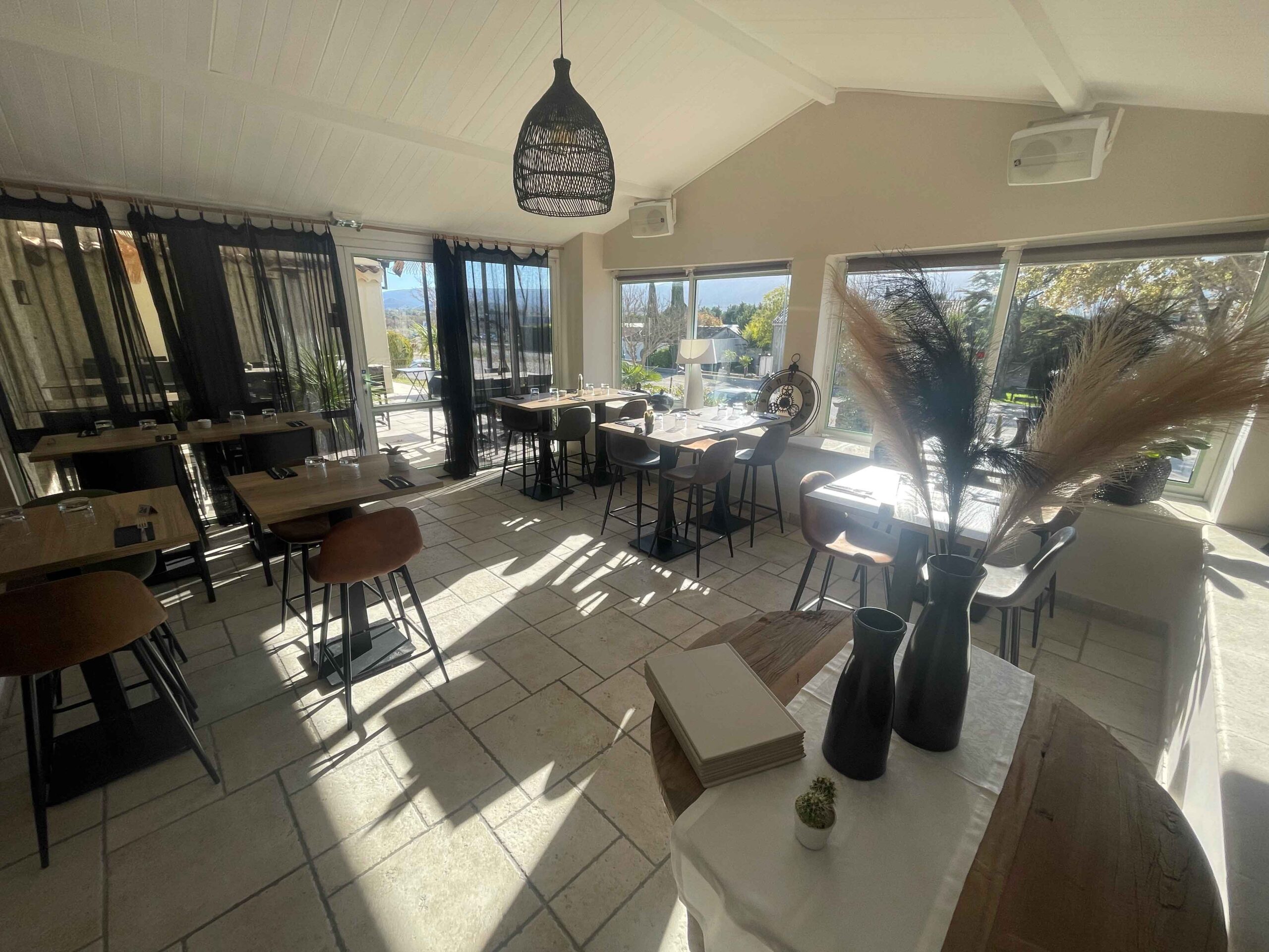 Restaurant spacieux au style contemporain, gastronomie Provençale simple et authentique, espace lounge/piscine, terrasse ombragée et soirées à thème.