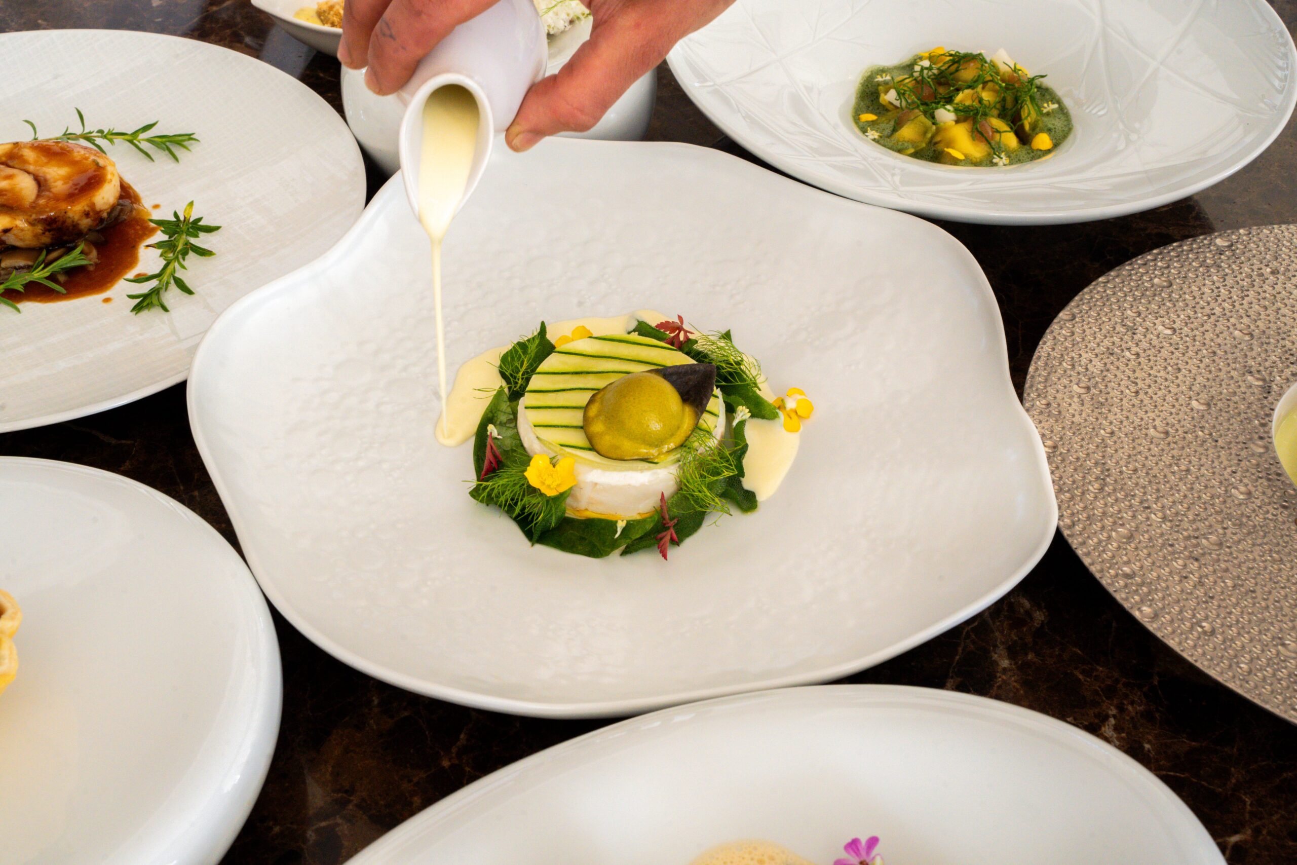 Haute gastronomie Franco-Italienne dans un cadre naturel et raffiné.